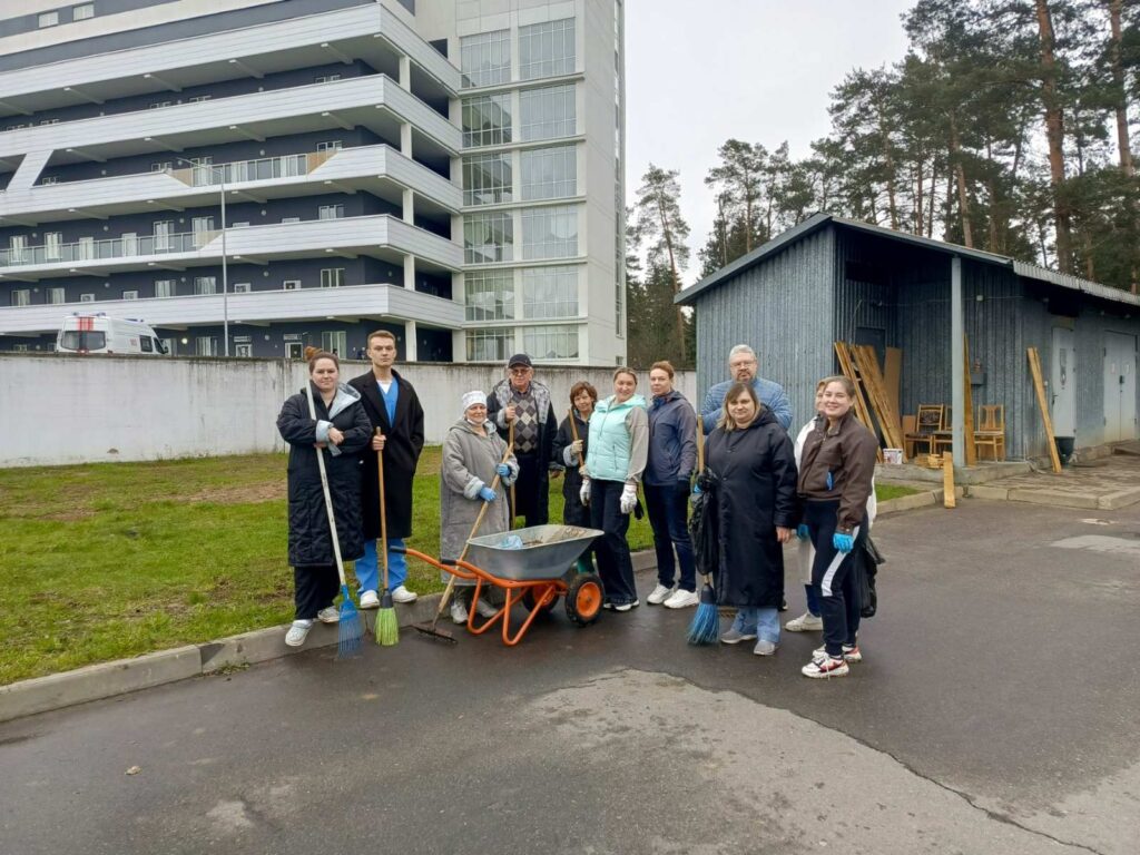 Все трудились с хорошим настроением и пониманием важности общего дела. Благодаря слаженной работе уже через несколько часов территория диспансера преобразилась: стало чисто, свежо и по-весеннему уютно.